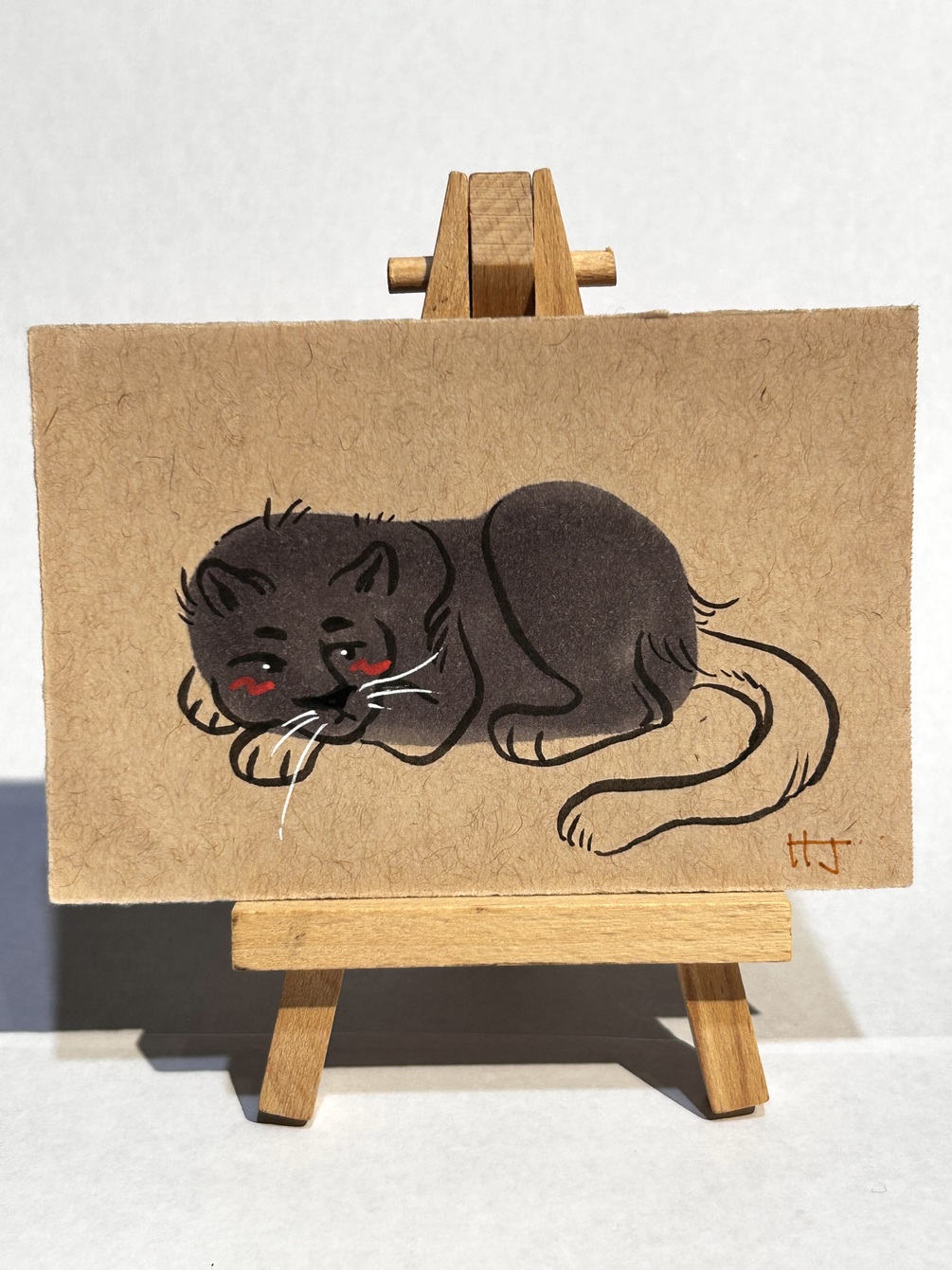 ~4''x3'' toned tan paper with alcohol ink "bloob" shape, layered with ink and paint pens. Made to be affordable yet unique for those who want to enjoy art but may not be able to commit to a larger or more expensive piece!