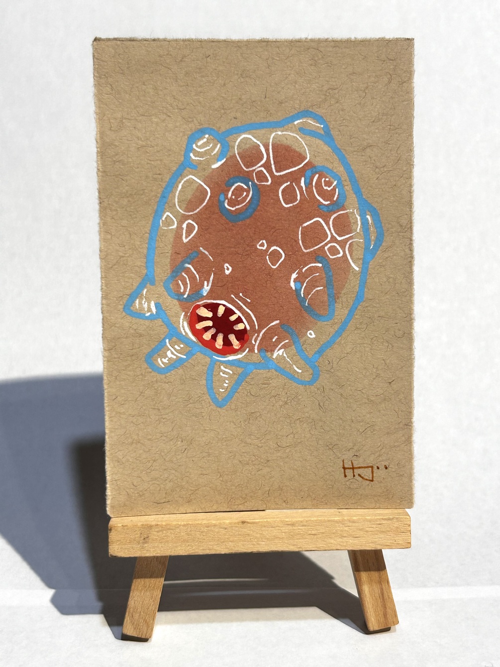 ~4''x3'' toned tan paper with alcohol ink "bloob" shape, layered with ink and paint pens. Made to be affordable yet unique for those who want to enjoy art but may not be able to commit to a larger or more expensive piece!